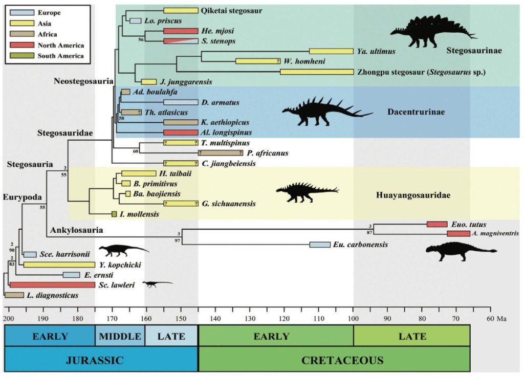 Gracias a este trabajo, se han podido realizar nuevas inferencias sobre la distribución temporal y geográfica de los estegosaurios. Según el cronograma filogenético incluido en el artículo, este grupo de dinosaurios apareció durante el Jurásico temprano, se diversificó ampliamente en el Jurásico medio y tardío, y declinó en el Cretácico temprano.