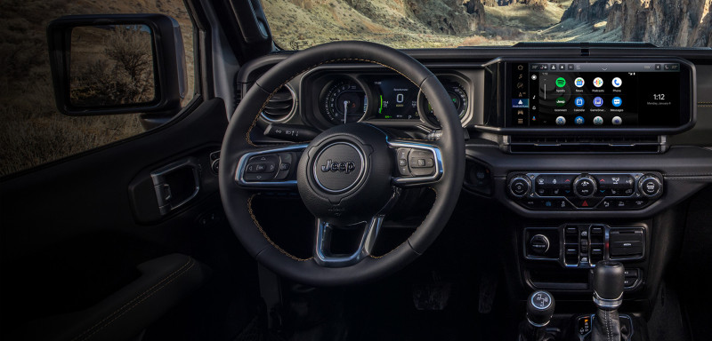 Aunque por fuera mantiene su estética robusta y aventurera, el interior del Jeep Wrangler 4xe está pensado para ofrecer comodidad, conectividad y funcionalidad en cualquier terreno. Materiales resistentes, superficies lavables y un diseño pensado para durar se combinan con una tecnología de última generación que mejora la experiencia a bordo.