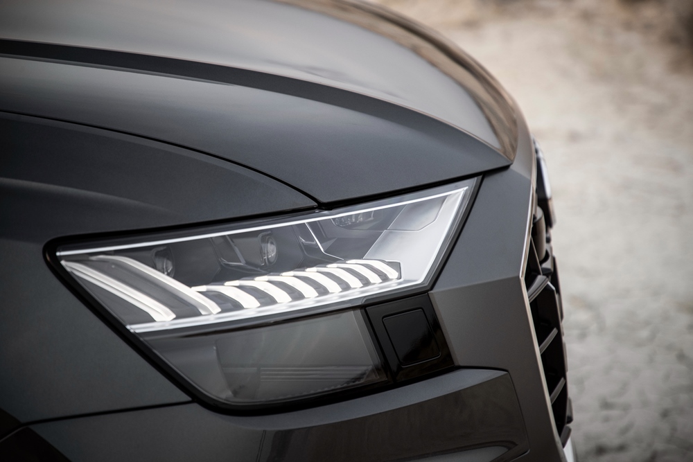 Una parrilla single frame de diseño octogonal es la carta de presentación del Audi Q8. Las formas de la parrilla, anchas y posicionadas de forma vertical, en conjunto con un spoiler inclinado hacia la parte delantera y unas prominentes entradas de aire consiguen una imagen frontal y robusta.