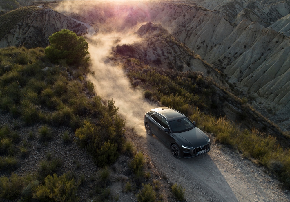 Con una distancia libre al suelo de 254 milímetros, cortos voladizos, tracción integral permanente quattro y control de descenso, este coche puede continuar avanzando cuando se termina el asfalto.