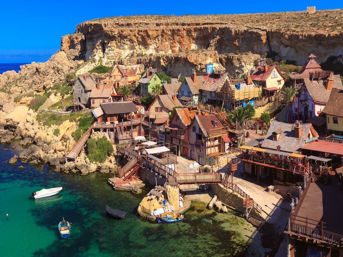 Este pueblo fue un decorado de película de los años 80. Abandonado poco después de la grabación del musical Popeye de 1980, que protagonizaba Robin Williams, esta villa alberga pintorescos y coloridos edificios de madera.
