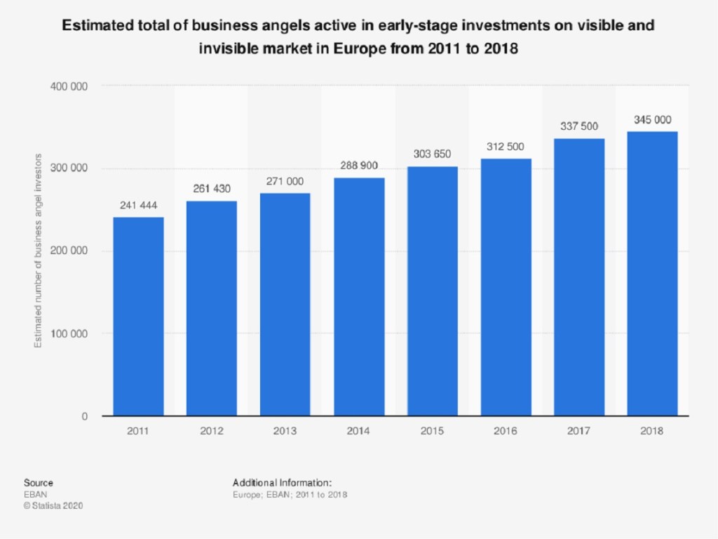 En el año 2018 el número de business angels activos en Europa se situó en 345 000 personas, mientras que en el mercado español operan más de 3 000 inversores de esta tipología. Según un informe publicado en 2019 por la Asociación Española de Business Angels Networks (AEBAN) de 2019, los sectores más populares entre los inversores españoles son: software (56 %), banca y finanzas (31 %) y ocio y comercio (22 %), por delante de actividades relacionadas con la salud, la biotecnología y la farmacia. La AEBAN cuenta con 35 redes de ángeles inversores.