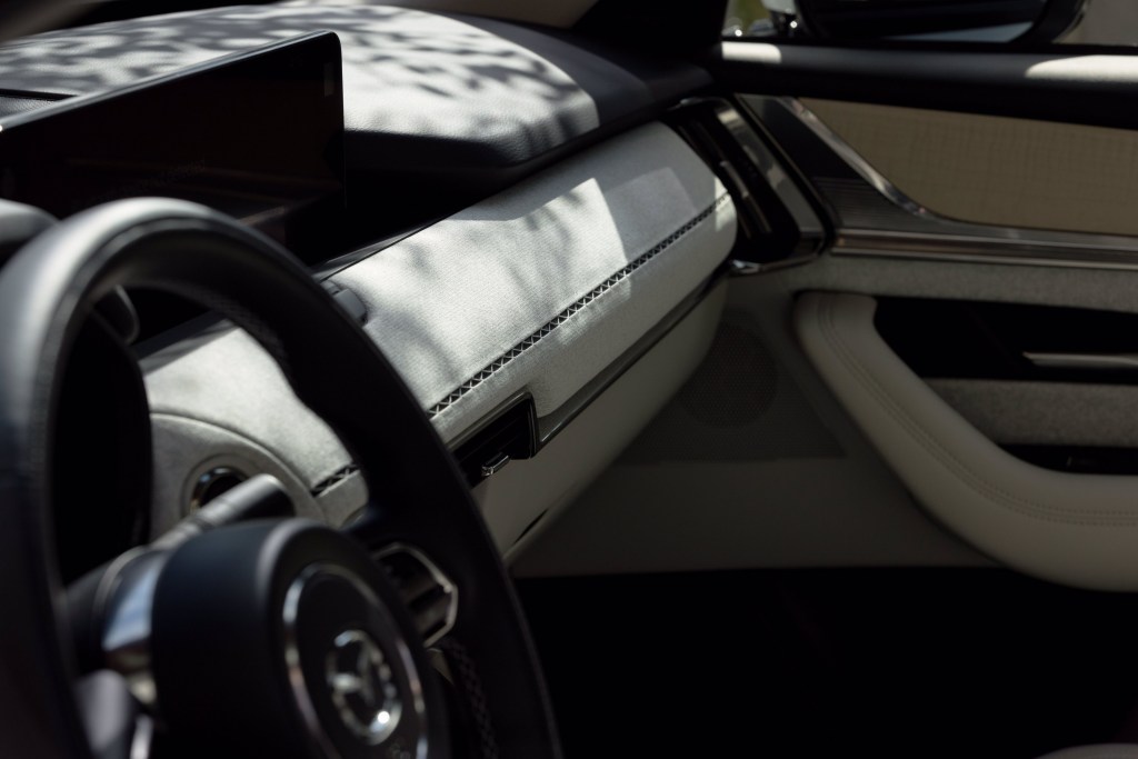 Para materializar el concepto del Ma, es decir, la estética del espacio que se deja deliberadamente vacío, Mazda ha eliminado todas las aristas en las superficies laterales del coche. De este modo crea un lienzo en blanco sobre el que se posa la luz para transmitir sensaciones de belleza natural. Como dice Gustave Djon Toug, diseñador sénior de Mazda: “Los reflejos son una pieza esencial dentro del lenguaje de diseño de Mazda. Le damos mucha importancia al modo en que la luz interactúa con el coche y a cómo va revelando la estética de sus superficies, resaltando los detalles de diseño, la precisión de las formas y la riqueza de los colores”. Este recurso se percibe, por ejemplo, en el reflejo en forma de S de los paneles laterales del Mazda CX-60, que brillan con un caleidoscopio de luces cuando el coche se desplaza, creando patrones fluidos que reflejan el entorno y refuerzan la sensación de movimiento. El resultado es un coche que parece dotado de vida incluso cuando no se mueve. Todo ello es una expresión muy genuina de la estética japonesa, con propuestas en continua evolución que fusionan el minimalismo de las formas con una enorme riqueza expresiva.