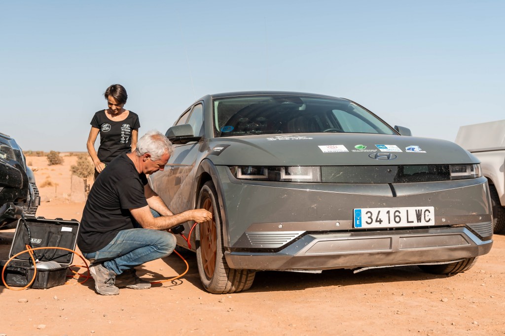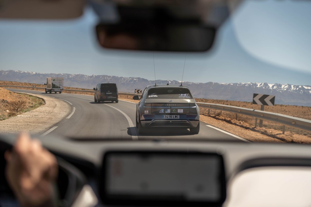 Pero Ioniq 5 no sólo ha superado con éxito pasar por las mismas pistas y caminos que el resto de la expedición. También lo ha hecho con los mismos horarios, al usarse la hora de la comida para las recargas en las dos etapas más largas. Y, lo que es más importante, toda la energía que ha consumido IONIQ 5 ha sido recargada en enchufes locales, ya fuese de la red de recarga rápida marroquí (de 50 kW), en el norte, o a través de los enchufes trifásicos de los hoteles, en el sur, gracias a un cargador portátil que viajaba en el interior del coche y que ha permitido hacer recargas de 11 kW. Con este sistema, el Ioniq 5 tardaba entre 4 y 5 horas cada noche en volver a tener la batería al cien por cien de su capacidad.