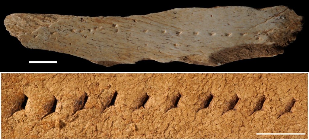 El examen microscópico mostró que la línea de 10 muescas se creó con una sola herramienta, y los otros puntos se crearon con cinco herramientas separadas en varios períodos.