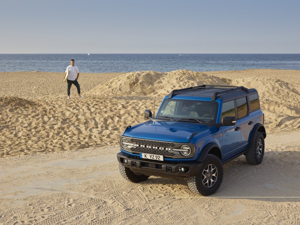 La carrocería del Bronco está atornillada a un chasis de acero de vigas con siete travesaños que además de una robustez extrema permite alcanzar recorridos de suspensión de hasta 259 mm. La suspensión delantera es de triángulos independientes con muelles helicoidales mientras que detrás hay un eje rígido de cinco brazos con muelles y amortiguadores. En el caso del Badlands los amortiguadores son Bilstein especiales con refrigeración para un uso extremo. El Bronco es como un tanque, pero deportivo y aunque viene equipado de auténtico lujo, para los que piensan en la aventura más extrema no estaría demás incluir la placa protectora para el motor, la transmisión y el depósito de combustible.