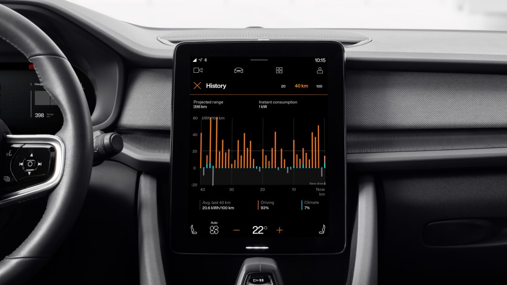 Gracias a la actualización de la app Range Assistant de Polestar, los conductores pueden controlar su consumo de energía en los últimos 20, 40 o 100 km. También reciben información en tiempo real que les permite ajustar su estilo de conducción para que sea más eficiente. El nuevo algoritmo de la app para estimar la autonomía tiene en cuenta cambios en factores ambientales y de otro tipo que afectan a la eficiencia.