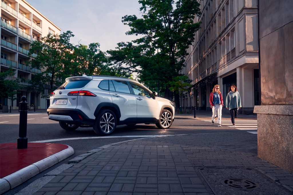 Corolla Cross mide 4.460 mm de longitud, 1.825 mm de ancho y 1.620 mm de alto, y tiene una distancia entre ejes de 2.640 mm. Por tamaño, se sitúa entre el Toyota C-HR y el Toyota RAV4, en el centro del competido segmento C en Europa, ofreciendo el confort, la funcionalidad y la versatilidad que necesitan las familias activas con hijos pequeños.