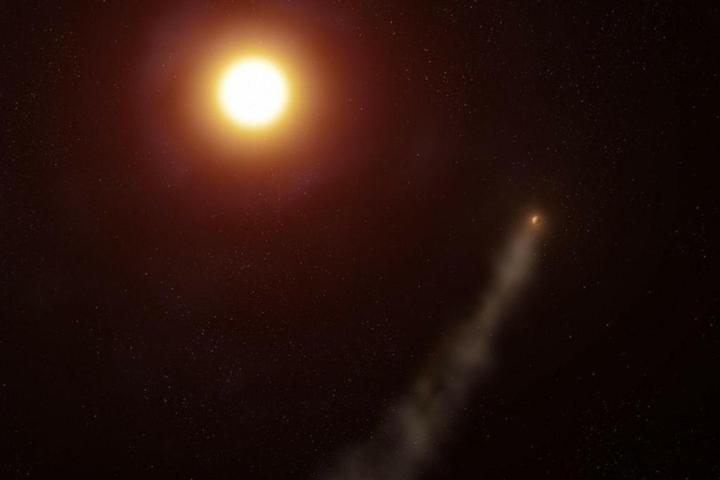 Un gigante gaseoso llamado WASP-69b en un sistema solar distante, orbita alrededor de su sol a un ritmo muy rápido y está dejando un rastro brutal de su propia atmósfera a su paso. Los astrónomos han descubierto que a medida que la atmósfera del planeta se escapa al espacio, los vientos estelares de su estrella anfitriona están esculpiéndola en forma de cola similar a la de un cometa, pero mucho más grande que lo observado anteriormente.