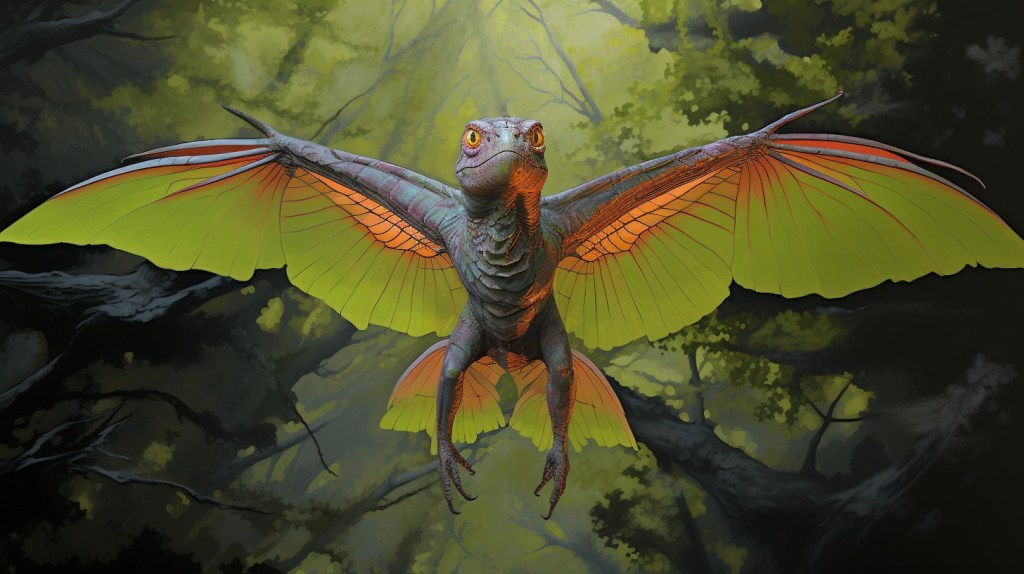 Los kuehneosaurios, como así se ha denominado a la familia del antiguo reptil volador, parecían lagartos, pero estaban más estrechamente relacionados con los antepasados de los cocodrilos y los propios dinosaurios. Eran animales pequeños, que cabían perfectamente en la palma de una mano y, según apuntan los investigadores, existían dos especies, una con alas extensas y otra con alas más cortas, hechas de una capa de piel extendida sobre sus alargadas costillas laterales, lo que les permitía saltar de árbol en árbol.