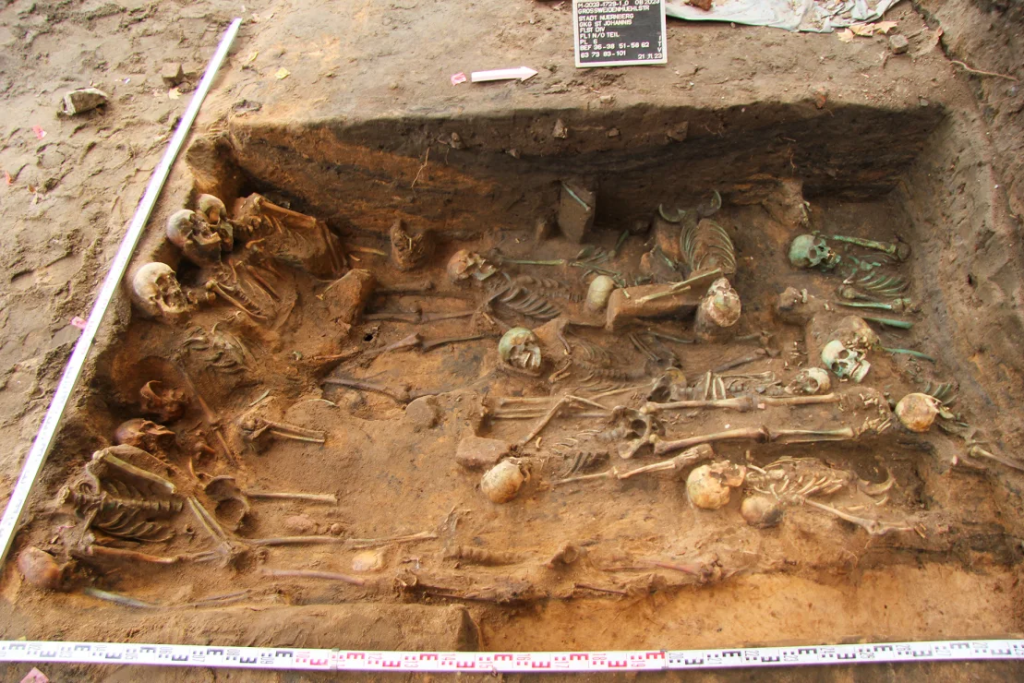 La ciudad alemana de Nuremberg, como muchas ciudades de la Europa de la Edad Media, experimentó brotes de peste, lo que no se esperaban encontrar los arqueólogos al examinar un terreno destinado a la construcción de una residencia de ancianos, fue la enorme cantidad de restos humanos que había. Más de 1.000 cuerpos apilados unos sobre otros. Nuremberg sufrió brotes de peste aproximadamente cada 10 años desde el siglo XIV en adelante, lo que dificulta fechar los restos, dicen los expertos.