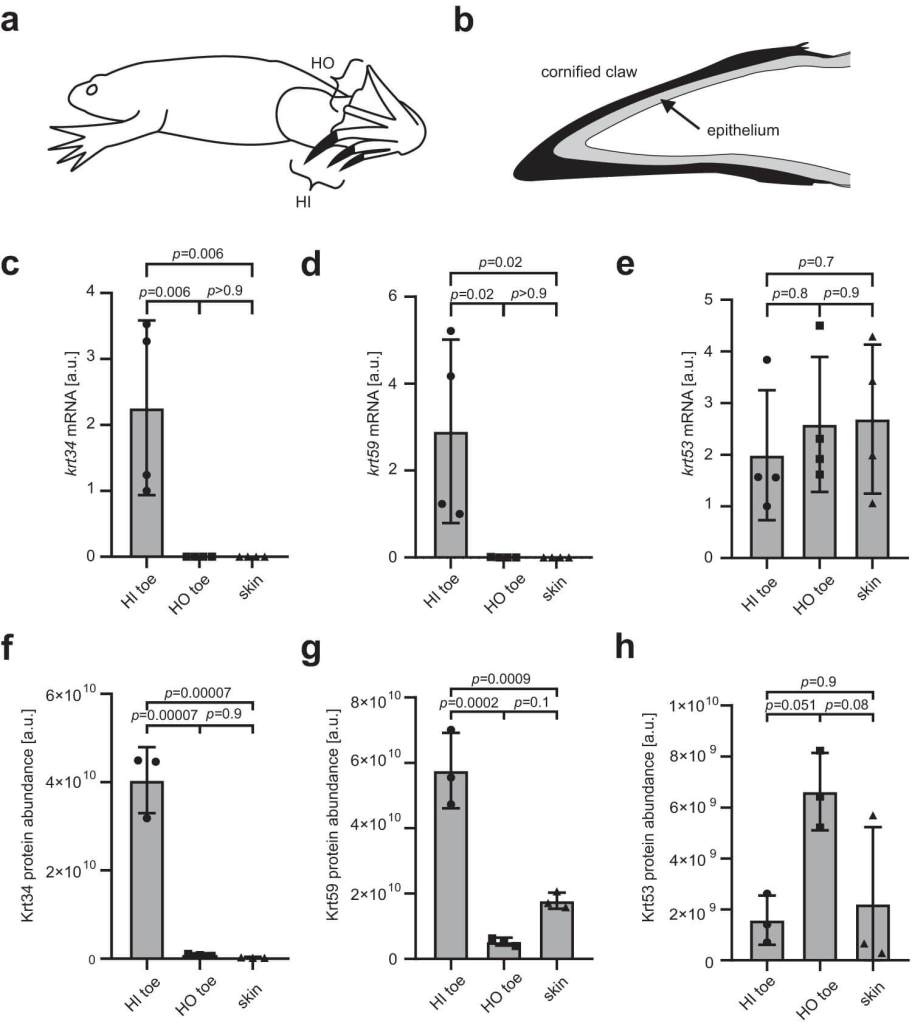 A pesar de que ciertos estudios previos habían sugerido que las garras de las ranas y los mamíferos surcaron caminos evolutivos independientes, este trabajo refuta esta teoría añadiendo ciertas similitudes en algunos genes implicados en la producción de moléculas parecidas a la queratina. Estos hallazgos sugieren que los humanos y las ranas compartían un ancestro común que portaba el código genético para desarrollar garras queratinizadas.