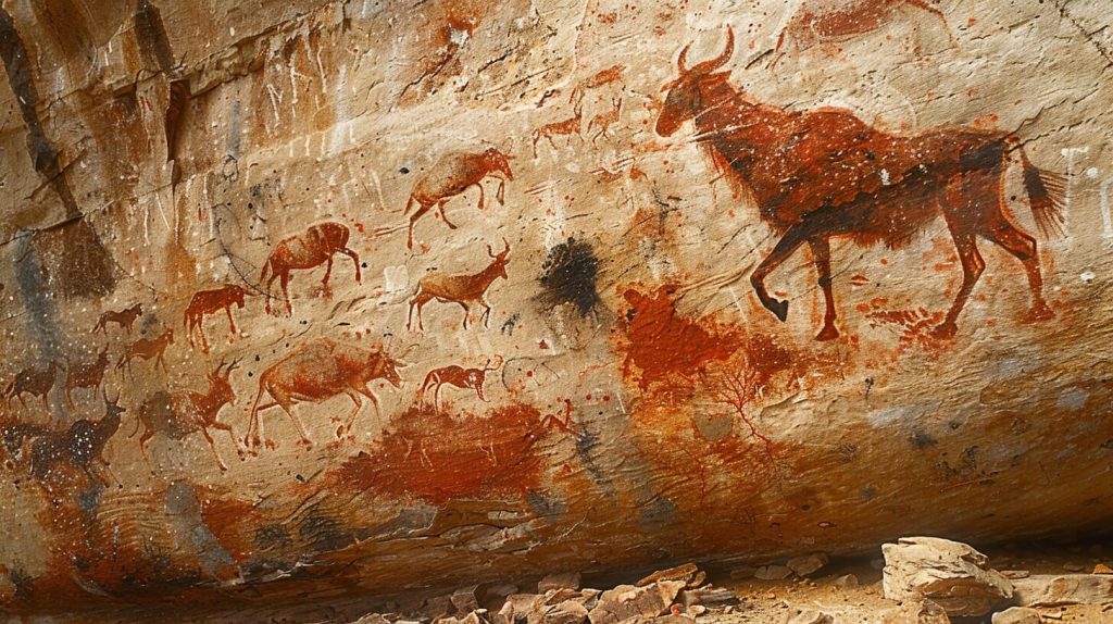 La evidencia arqueológica muestra que los neandertales comenzaron a marcar cuevas hace 75.000 años, pero estas marcas generalmente no eran figurativas. Hasta hace unos años se pensaba que la cueva de Lascaux, en Francia, con un panel de arte rupestre de hace 21.000 años, era la pintura rupestre figurativa más antigua. Cada vez nos damos cuenta de que hay que retroceder mucho más de lo que se pensaba para hallar esta forma de contar historias.
