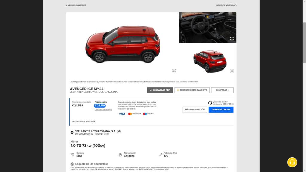 Una vez tomada la decisión de adquirir un vehículo, el procedimiento es muy sencillo. Tras introducir datos de personales y dirección postal en un formulario, se puede decidir entre pagar al contado o financiar la operación.