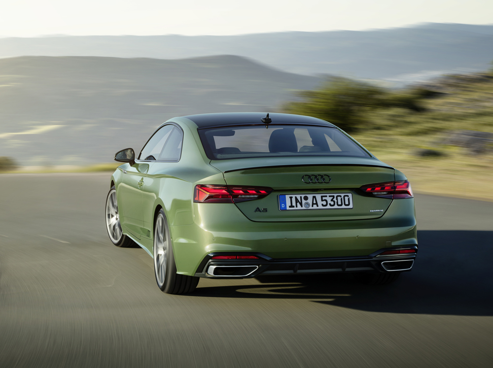 Audi recurre al sistema Mild Hybrid para reducir las emisiones y consumos de cuatro motores del A5. Lo hacen incorporando un motor eléctrico conectado al cigüeñal mediante una correa. Este propulsor recupera carga de la energía cinética de las desaceleraciones y frenadas, almacenándola en las baterías de iones de litio. La potencia eléctrica que apoya los bloques de cuatro cilindros es de 12 voltios y en las variantes S5 aumenta a 48 v.