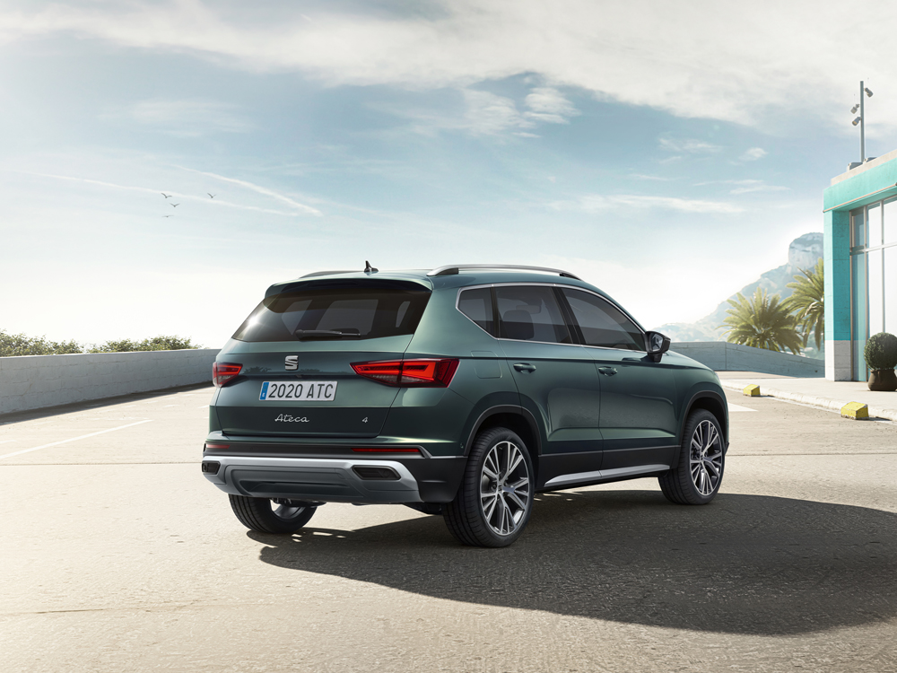 La trasera del Ateca 2020 fue lo primero que conocimos. Sus grupos ópticos, también Full LED y con intermitentes dinámicos, tienen un diseño casi idéntico. El nervio horizontal que recorre el portón está más marcado, una solución que ofrece una imagen robusta y ancha. El nuevo logotipo Ateca, en relieve, muestra el nuevo estilo caligráfico de la firma.