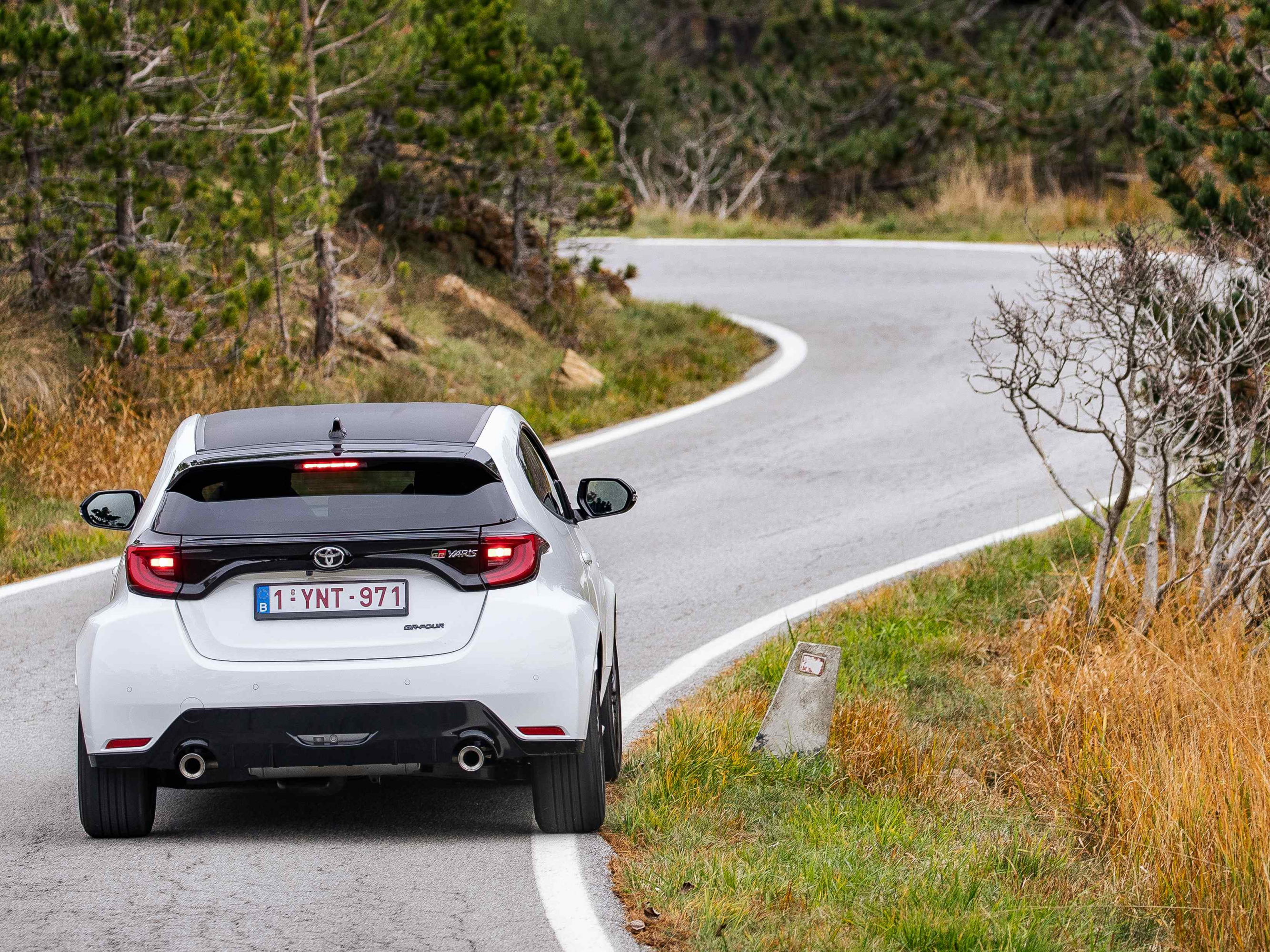 Este Yaris GR es capaz de alcanzar el 0 a 100 km/h en 5,5 segundos y una velocidad punta de 230 km/h limitada electrónicamente. Sin embargo, lo mejor son sus sensaciones al volante. La tracción integral, con ambos diferenciales, lo convierten en el amo de los tramos revirados, con una salida de curva espectacular y muy firme.