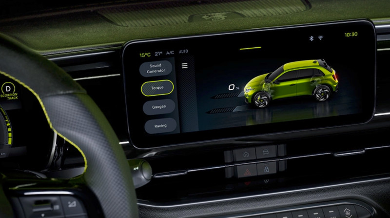 El Abarth 600e no solo destaca por su potencia, sino también por su capacidad de transformación dinámica. Gracias a sus tres modos de conducción inteligentes —Turismo, Scorpion Street y Scorpion Track— el conductor puede modificar profundamente el comportamiento del vehículo con solo pulsar un botón. Cada modo ajusta parámetros clave como la entrega de potencia, la respuesta del acelerador, la dirección asistida y la configuración del control de estabilidad (ESP), adaptando el coche a distintos entornos y estados de ánimo.