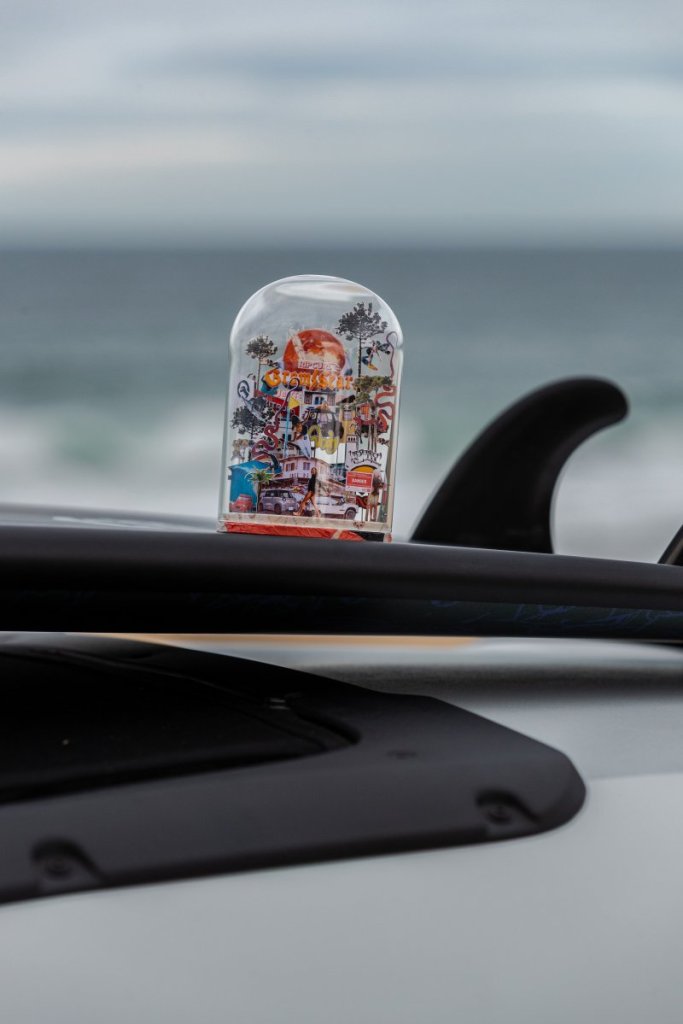 El Ami Buggy Rip Curl Vision está lleno de guiños al universo surfero: un peine de cera con forma de Ami, un llavero temático, e incluso un globo de vidrio diseñado por la artista Charlotte Bourrus, que simboliza el equilibrio entre ocio, aventura y libertad. Cada elemento cuenta una historia. Cada detalle convierte al vehículo en un objeto de deseo para quienes aman la autenticidad.
