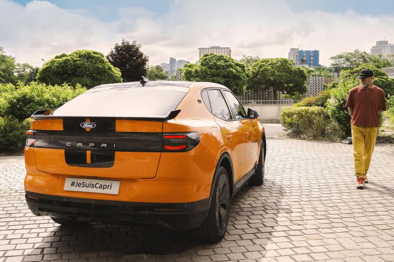 Visualmente, el nuevo Capri es una reinterpretación audaz del clásico. Mantiene la esencia coupé con una silueta elegante y deportiva, pero la adapta a las proporciones de un SUV contemporáneo. El resultado es un vehículo que se reconoce al instante, pero que también sorprende por su presencia imponente.