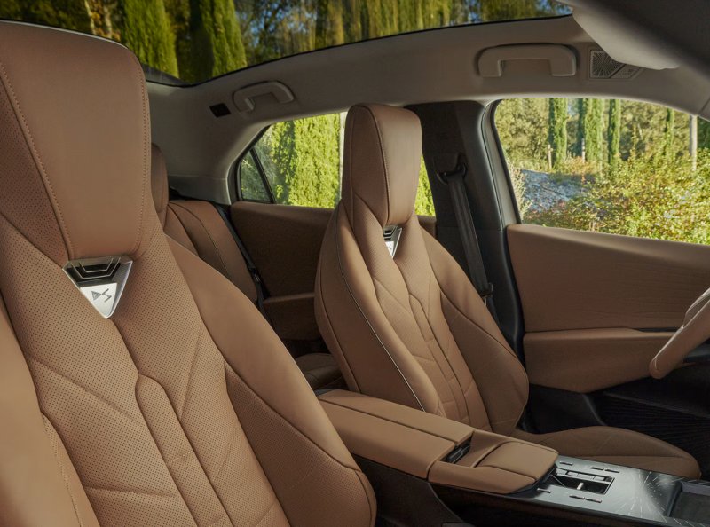 Los asientos delanteros son calefactables, ventilados, masajeadores y están equipados con el innovador sistema DS Neck Warmer, que proporciona calor dirigido al cuello acompañado de un logo retroiluminado. En la parte trasera, los pasajeros disfrutan de un espacio generoso con asientos reclinables, también calefactables y ventilados.