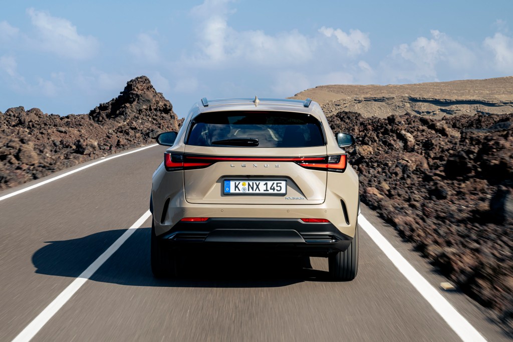 Está más separado del suelo, con una suspensión 15 mm más alta, lo que permite aumentar la distancia al suelo y brindar al conductor una vista dominante del entorno, e incorpora unas exclusivas llantas de aleación en negro mate de 18 pulgadas, con unos robustos neumáticos todoterreno. Los detalles negros también comprenden los raíles del techo, las cubiertas de los retrovisores exteriores y los anillos de los faros antiniebla. Las molduras de las ventanas cuentan con un acabado en negro metalizado, mientras que la parrilla de doble punta de flecha característica de Lexus presenta un entramado negro brillante y un marco en acero inoxidable negro. Estos elementos negros marcan un claro contraste con los nuevos colores característicos del NX Overtrail: Moon Desert y Verde Oliva. En un toque distintivo, el nombre LEXUS en el portón posterior aparece en gris.