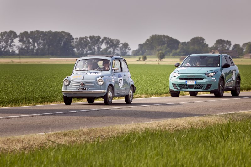 Pero esta no es solo una mirada nostálgica al pasado. Fiat ha querido tender un puente entre ayer y mañana: junto al 600 de 1955, único y restaurado, desfilaron dos vehículos contemporáneos que simbolizan la evolución de la marca: el Fiat 600 Hybrid y el potentísimo Abarth 600e, un nuevo ikon para el mundo eléctrico. Esta combinación de tradición e innovación convierte a la edición número 43 de la 1000 Miglia, que tuvo lugar del 17 al 21 de junio, en un emotivo homenaje y un sofisticado despliegue de futuro.