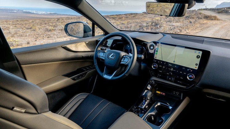 El habitáculo del NX Overtrail refleja la filosofía Omotenashi de Lexus, ofreciendo un entorno acogedor y sereno, independientemente del tipo de terreno que se transite. Los asientos delanteros deportivos están tapizados en cuero sintético Tahara en tonos negro y caqui, con costuras en contraste, mientras que las inserciones en madera veteada noble refuerzan la conexión con la naturaleza.
