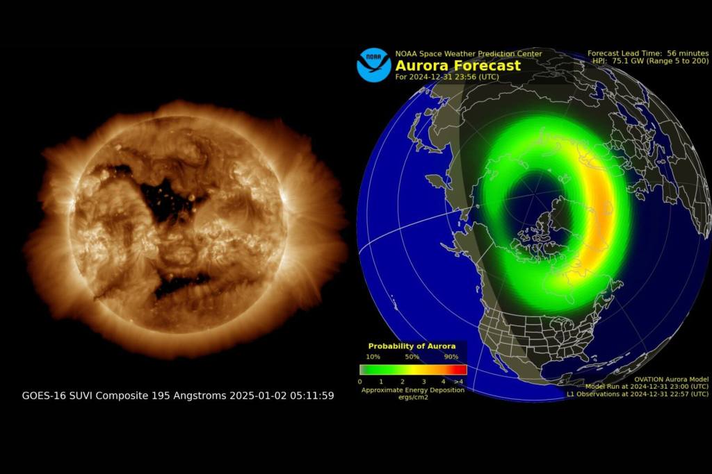 El 1 de enero de 2025, el índice Kp alcanzó un nivel 8 (G4), correspondiente a una tormenta geomagnética severa. Este valor permitió que las auroras fueran visibles en latitudes tan inusuales como España, algo extremadamente raro.