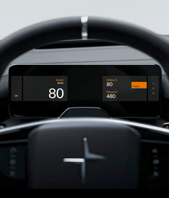 Complementando esta experiencia digital, el Polestar 4 incluye una pantalla de instrumentos de 10,2 pulgadas frente al conductor, así como un head-up display de 14,7 pulgadas que proyecta información clave directamente en el parabrisas. Esta solución no solo incrementa la seguridad al reducir las distracciones, sino que también permite al conductor mantener la mirada fija en la carretera mientras accede a datos como la velocidad, las indicaciones del GPS o las alertas del vehículo. Es una experiencia envolvente, fluida y pensada hasta el último detalle.