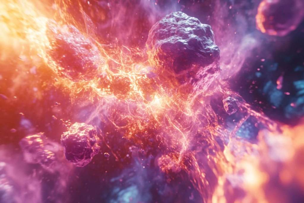 El QGP es un estado exótico de la materia donde los quarks y gluones, normalmente confinados en protones y neutrones, se liberan y fluyen libremente. Este fenómeno ocurre únicamente a temperaturas y densidades extremas, similares a las que se lograron justo después del Big Bang.