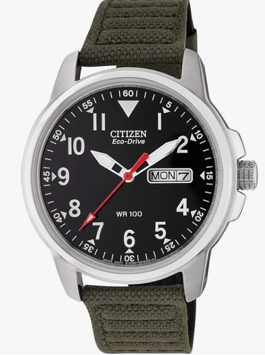 Tiene una caja de acero inoxidable resistente y una correa de tela o silicona duradera. Su diseño incluye una esfera fácil de leer, con marcadores luminosos y una ventana de fecha. En definitiva, nos encontramos con un reloj muy versátil, duradero y pensado para aventuras al aire libre.