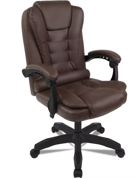 Esta silla de despacho giratorio combina confort y estética en un solo paquete. Su elegante diseño ergonómico de cuero sintético y relleno de espuma de alta densidad, asegura que mantengas una postura óptima y de confort durante todo el tiempo que lo utilices, mientras que los reposabrazos densamente acolchados añaden un toque de lujo a la experiencia.