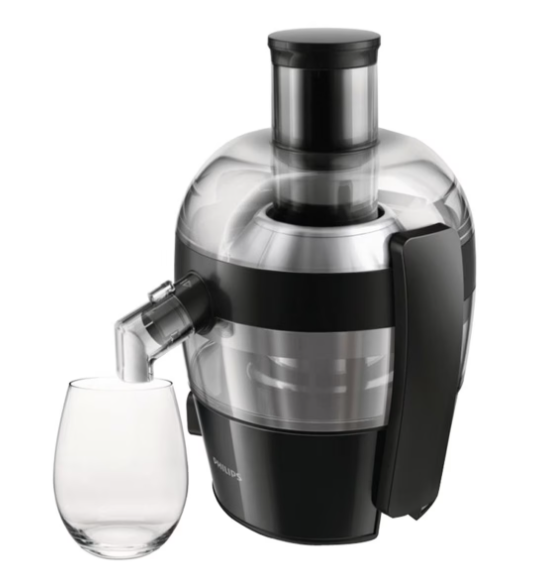 Si tienes poco espacio en casa, la Philips Compact es genial porque, como su nombre indica, es de las más compactas que puedes encontrar en el mercado. Que esto no te lleve a engaños porque tiene muy buena capacidad en su depósito de pulpa. Al igual que el modelo anterior, encontramos algo escasa una jarra de zumo de 0,5 litros, aunque en este caso se puede usar también con otro vaso sin temor a derramar o salpicar.