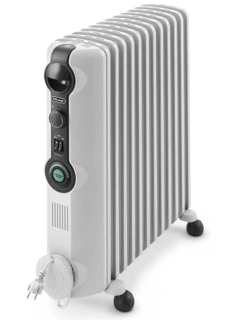 Es el turno de un radiador de aceite y en este sentido uno de los más destacados es el de la marca De’Longhi TRRS 1225C Radia S. Es uno de los mejores radiadores de aceite por su calidad/precio que es capaz de calentar espacios grandes por su alta potencia y sus 12 elementos, diseñados para generar y mantener el calor. Presenta un funcionamiento sencillo en el que puedes seleccionar el modo y nivel de temperatura. Tiene dos interruptores de apagado y encendido y un botón que activa el modo Confort Temp, manteniendo la temperatura en la estancia a 22º de forma automática.