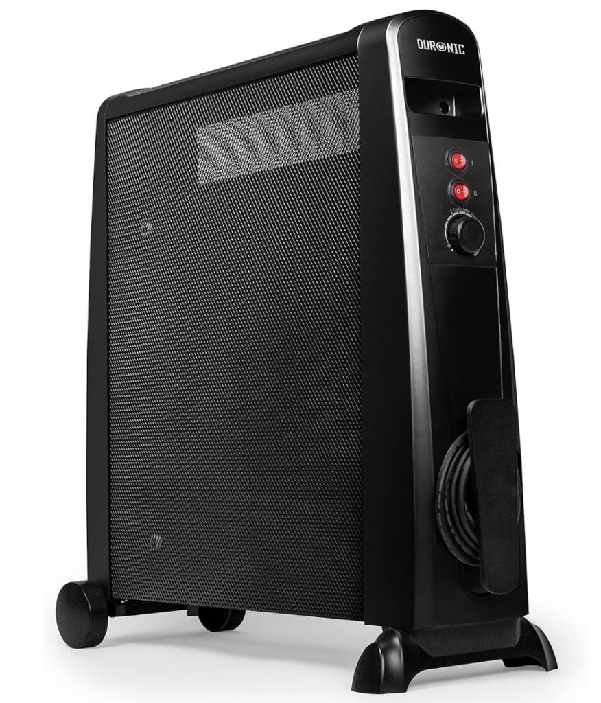 Para los que buscan un radiador para grandes espacios y que caliente rápidamente, el Duronic HV101 es una gran opción. Tiene una gran potencia de 2500 W y calienta en solo 1 minuto sus placas de mica, manteniendo la temperatura y su termostato consigue que se apague al alcanzar la temperatura indicada. Tiene un funcionamiento bastante básico con una rueda en la que seleccionarás la temperatura y 2 interruptores para la potencia.