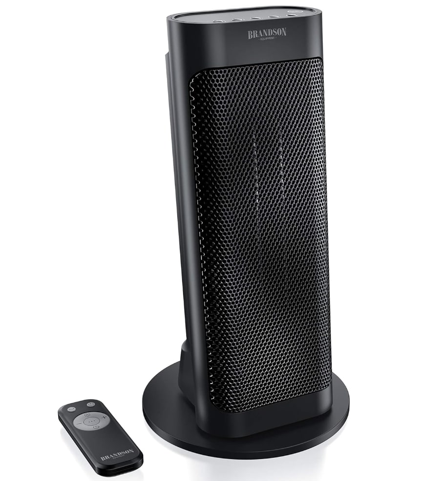 Los diseños con mando a distancia aportan mucha comodidad como este de la marca Branson. Es un dispositivo moderno, atractivo y fabricado con elementos cerámicos que generan una potencia de calefacción de 2000 W. Tiene función de temporizador para que ajustes el tiempo de funcionamiento y apagado en 8 horas. Ofrece seguridad frente a recalentamientos y protección antivuelcos.