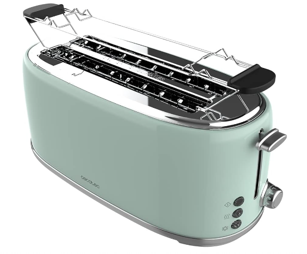 De este diseño nos ha gustado mucho su diseño retro, unas ranuras muy anchas y que las paredes son de toque frío, por lo que no te quemarás al tocarla cuando saques tus tostadas. Lo que nos gusta algo menos es su precio, que solo tuesta dos rebanadas a la vez (escaso si tienes una familia grande) y que no tiene rejilla calientapanecillos.