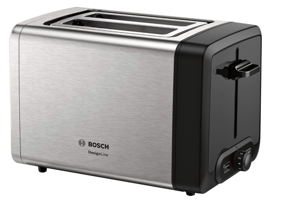 Es el turno de la DesignLine TAT4P420DE de la marca Bosh, un tostador vertical de 970 W con ranura para 2 rebanadas. Está disponible en varios colores para que puedas escoger el que más combina con el resto de tu cocina aunque el acabado brillante nos parece el más elegante. Se trata de una tostadora compacta que cuenta con un sistema de centrado automático para ofrecer un tostado más uniforme en el pan. Dispone de dos rodillos para sacar de su plataforma y tostar trozos de pan más pequeños. Cuenta también con función descongelado y una bandeja para las migas.