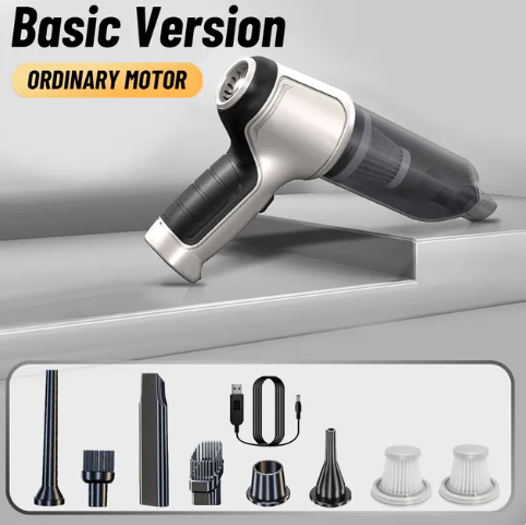 Está equipada con un motor ordinario que ofrece un grado de vacío de 5000PA y una velocidad nominal de 15500rpm, haciéndola ideal para la limpieza de superficies interiores del coche. También cuenta con una batería de 2000mAh y seis accesorios extras.
