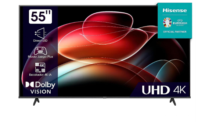 De las opciones más económicas que puedes encontrar es este Hisense 55A6K que si destaca por algo es por su tecnología Direct Full Array que le otorga colores y contrastes muy superiores a los de otros televisores más caros. A esto le acompaña Dolby Vision para disfrutar de la calidad HDR, adaptándose a la luz ambiente. Para el sonido incorpora el modo juego Plus que otorga un sonido envolvente sin necesidad de altavoces externos.