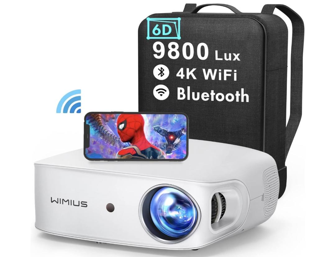 La siguiente opción que os presentamos es la del proyector WiMiUS K7 que tiene un gran brillo y luminosidad gracias a los 9800 lúmenes que alcanza. Es un proyector con una gran relación calidad/precio que nos ofrece imágenes a gran calidad y un sonido súper nítido y claro. Obtendremos una pantalla de hasta 300 pulgadas con soporte para 4K y conectividad de sobra para compartir el contenido desde tus dispositivos móviles.