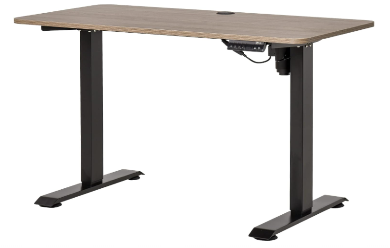 El diseño es elegante y se crea en melamina con un acabado de madera color teca y estructura metálica en blanco o negro. Destaca por su sistema de paro automático, deteniéndose para evitar golpes si detecta cualquier tipo de objeto y cuenta con funciones de parada por sobrecalentamiento y sobrecarga para mayor seguridad. Tiene 4 memorias preestablecidas lo que lo convierte en un escritorio muy flexible y práctico para todo tipo de usuarios. No vamos a encontrarnos con recogecables y tiene un tamaño fijo, pero su relación calidad/precio justifica cualquier contra que pudiésemos encontrar.