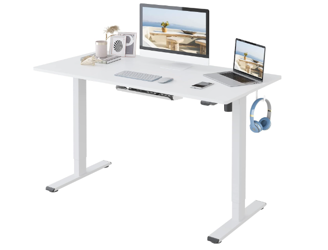 Le hemos echado el ojo también a este escritorio elevable de la marca Dripex que nos parece una gran opción ya que está disponible en dos acabados de color y en diversas medidas para ajustarse a las necesidades de tu despacho. En este escritorio nos encontramos con un rango de altura entre los 71 y los 117 centímetros y cuenta con una función de memoria para agilizar el ajuste. Su estabilidad es muy buena y está respaldada por un sistema anticolisión que detiene el movimiento si se encuentra con algún obstáculo, además es bastante silencioso ya que está por debajo de los 50 decibelios.