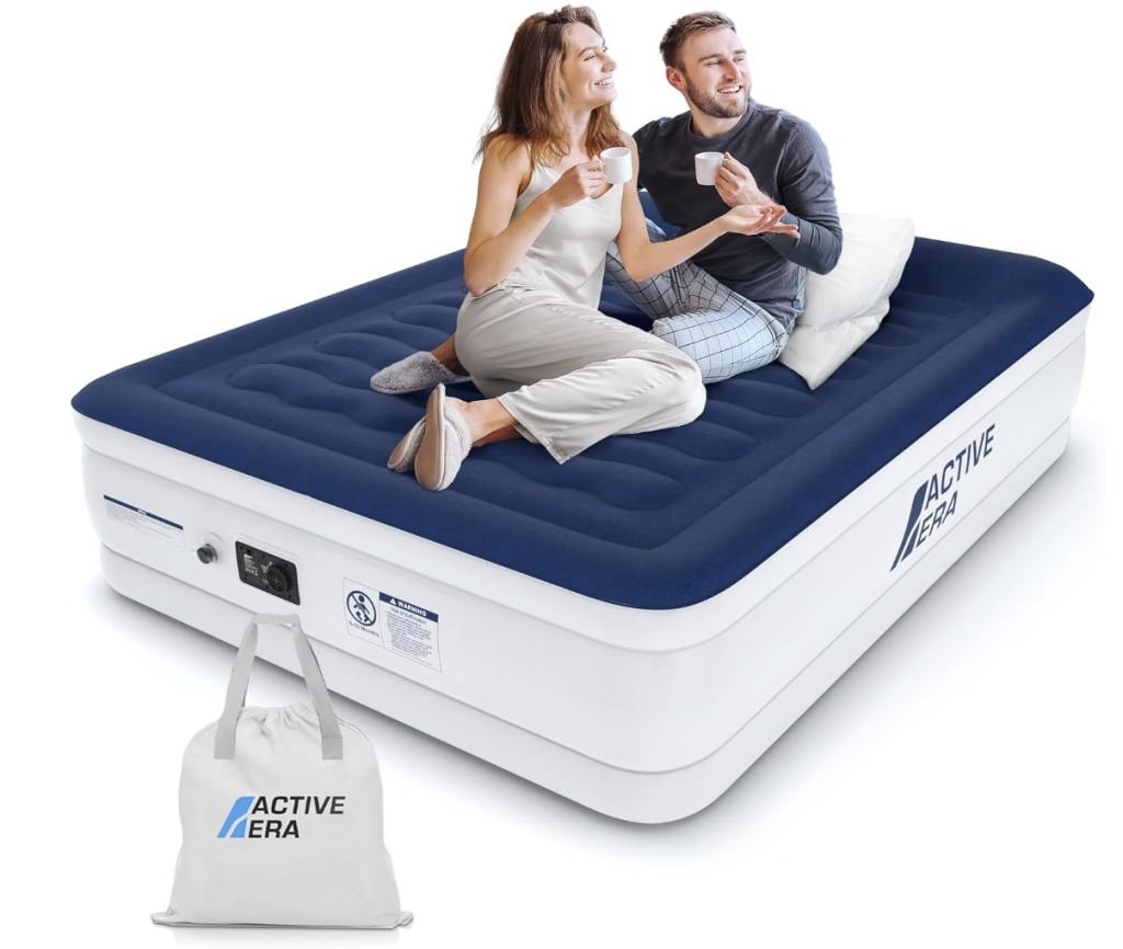 El colchón inflable Active Era es conocido por su lujoso diseño que incorpora 21 bobinas de aire para un soporte completo y libre de dolores de espalda. Su estructura multicapa resistente a pinchazos y su parte superior de felpa suave e impermeable lo convierten en una opción atractiva para quienes buscan calidad y confort. Con una altura de 56 cm, es fácil de subir y bajar, y su bomba eléctrica infla el colchón en menos de 3 minutos, siendo silenciosa y fácil de transportar gracias a la bolsa incluida. Aunque es algo más pesado que otros modelos, sus ventajas lo convierten en una elección práctica y duradera.