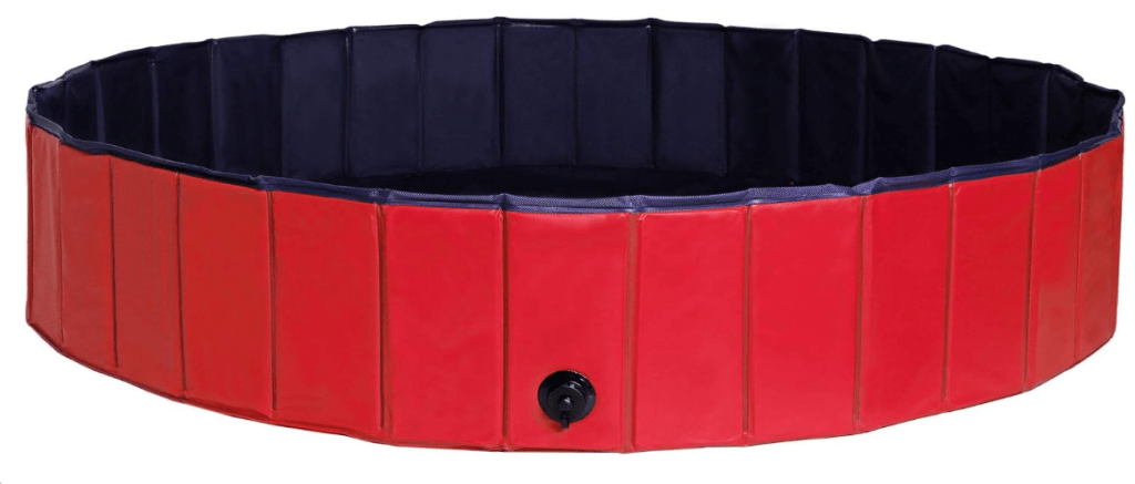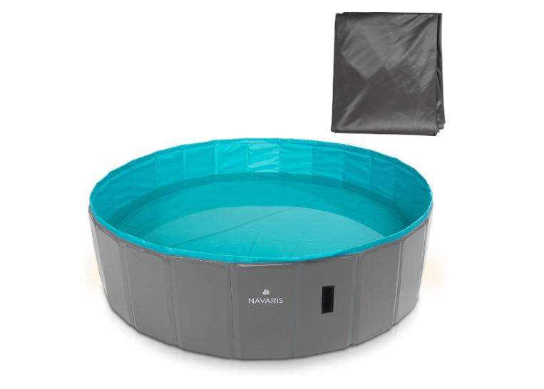 Buenas valoraciones avalan la siguiente opción de nuestra que lista que es la piscina para perros Navaris. Cuenta con 120 cm de diámetro y 30 cm de altura, siendo ideal para perros medianos y grandes. Está fabricada en PVC resistente a arañazos, plegable y fácil de transportar, sin necesidad de inflado. Dispone de un desagüe para vaciar agua fácilmente y base antideslizante. Incluye una cubierta para ahorrar agua y tiempo de limpieza. Lo que más destacan los usuarios son su durabilidad y practicidad, así que si esto es lo que más valoras en tu compra, te recomendamos la piscina para perros Navaris.