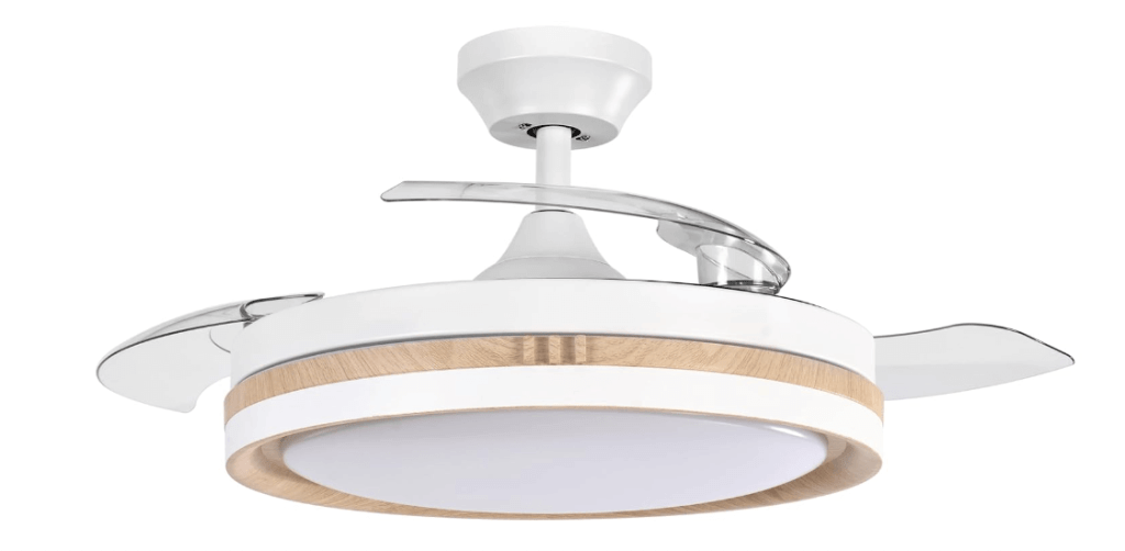 Está fabricado con materiales de alta calidad como metal, ABS y policarbonato, ofreciendo una combinación de potencia y versatilidad. Equipado con tecnología LED integrada de 72W y tres temperaturas de luz seleccionables (3000K, 4500K, 6000K), además de un temporizador, este ventilador es ideal para cualquier estación del año. Su moderno diseño en color blanco/haya con un aro decorativo se integra perfectamente en cualquier decoración del hogar, mientras que sus tres aspas garantizan una alta resistencia y un toque de sofisticación. Controlado mediante un mando a distancia, permite seleccionar entre seis velocidades distintas para una experiencia de confort total.