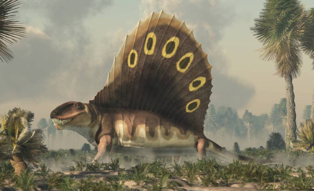 Un reptil del período Pérmico, entre hace 299 y 251 millones de años, por lo que vivió antes que los dinosaurios. Como ya sabes identificarlos, a pesar de su aspecto, propio de películas como “Parque Jurásico”, tiene las patas a los lados del cuerpo, como los lagartos que conocemos hoy día, por lo que no forma parte del grupo de los dinosaurios.
