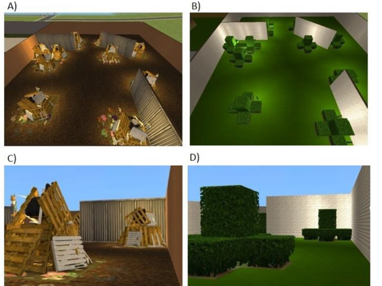 Para demostrarlo, la científica empleó escenarios virtuales recreados con el videojuego de “Los Sims”. Se trataba de escenas distintas (un depósito de chatarra, un jardín), pero con una disposición espacial similar, como se puede ver en el ejemplo de la fotografía. En trabajos previos, su equipo ya había sido capaz de recrear la sensación de déjà vu con el uso de estos escenarios. Ahora, fueron un paso más y mostraron a los participantes una especie de recorrido con una serie de giros por los escenarios virtuales.