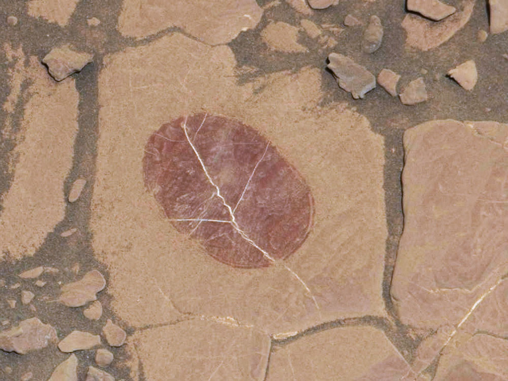 En una parte de "Vera Rubin Ridge" donde investigadores del equipo rover intentaron determinar si los recubrimientos de polvo ocultan el contenido de hematita de las rocas (un mineral compuesto de óxido ferroso), la cámara Mast (Mastcam) del robot de la NASA Curiosity Mars tomó esta imagen de una superficie rocosa cepillada con una herramienta de eliminación de polvo del rover en noviembre de 2017.